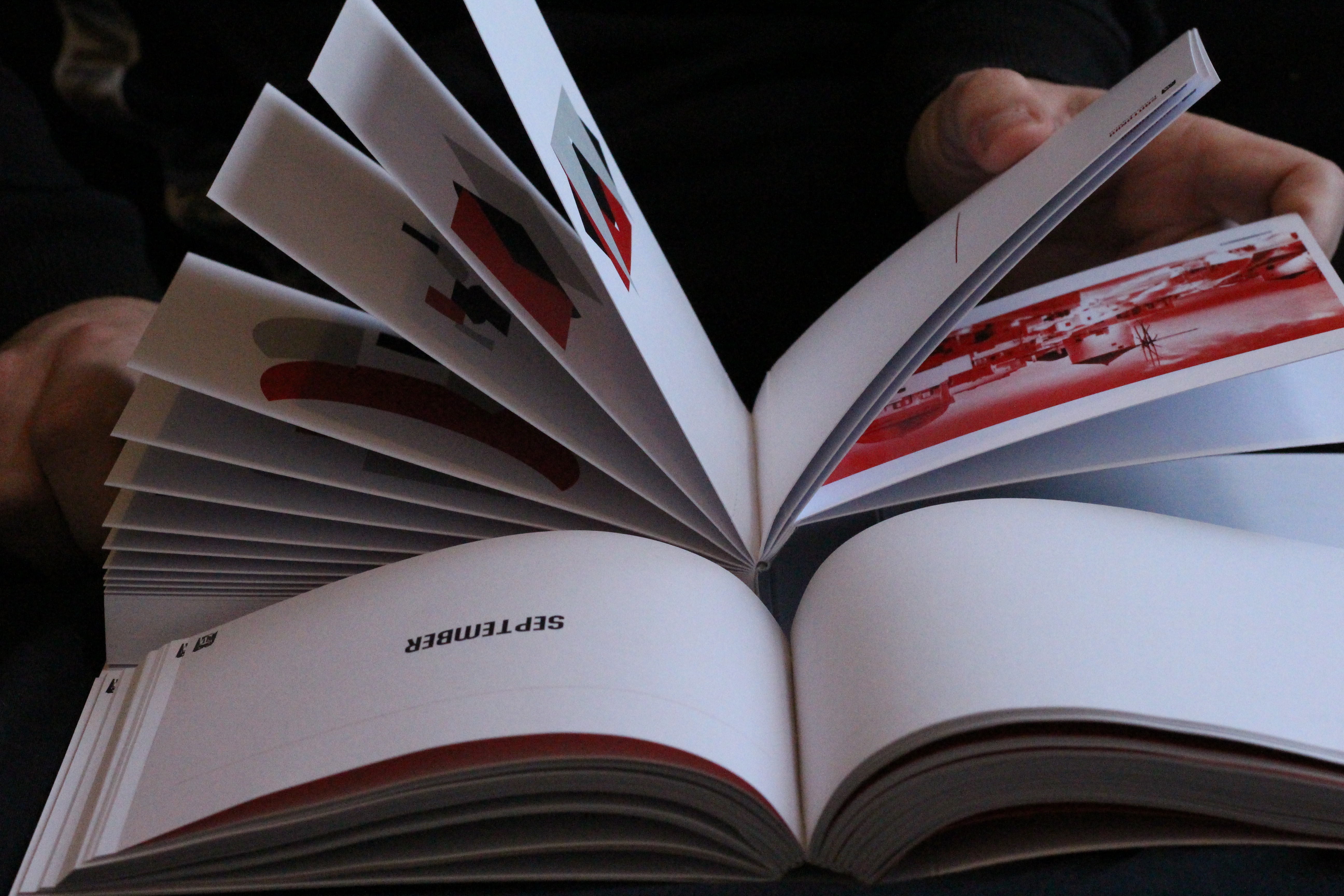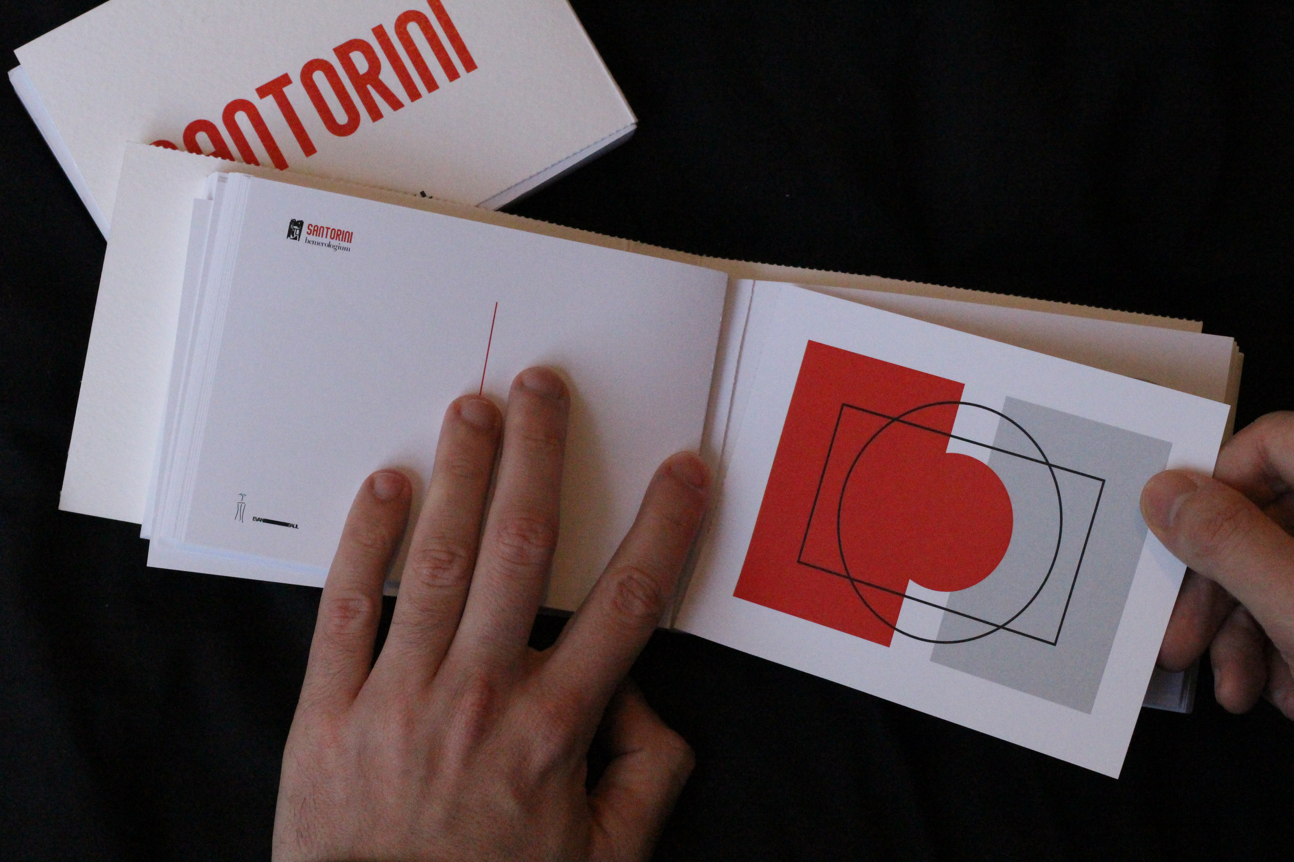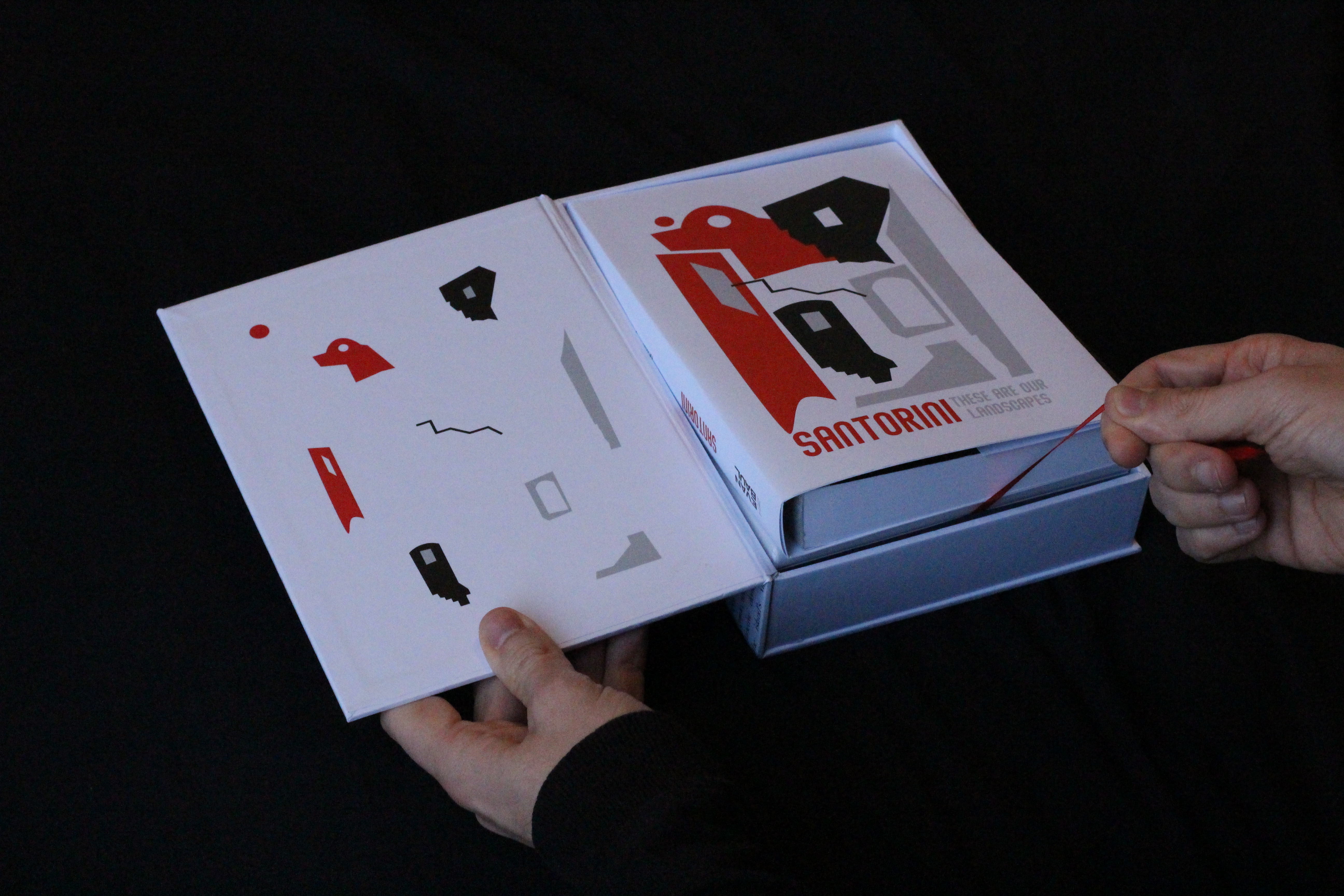 Wanting to showcase the side of the picturesque and traditional aspects of Santorini without using the classic yet obvious blue and white colours, this ‘hemerologium’ (calendar) is a daily planner that can be split into two, with the bottom half becoming a series of carte-postals.