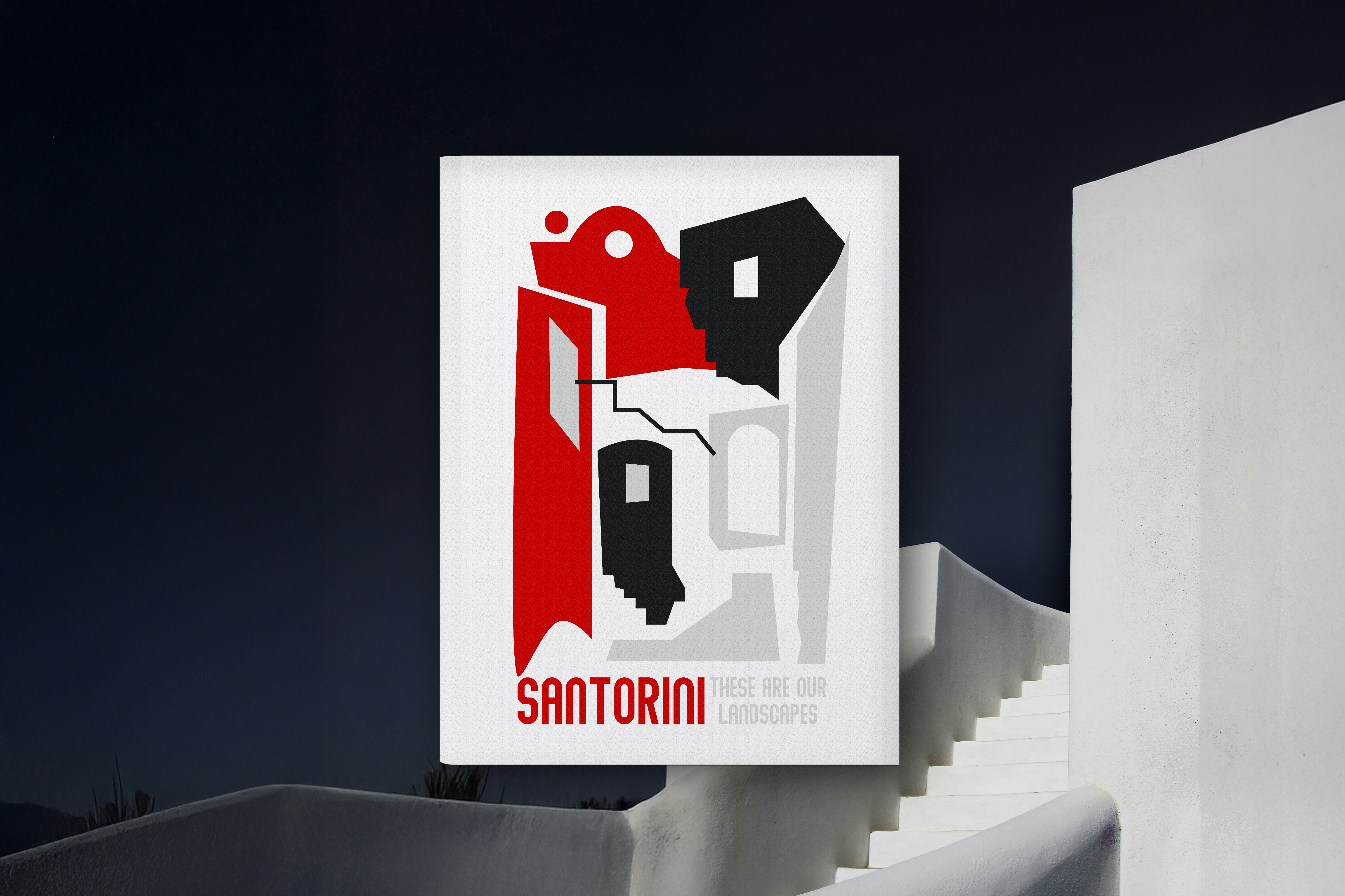 The syntheses are abstractly constructed using red and black, referencing the majestic sunset and the volcanic beaches; neutralising the composition while keeping it elegant with a sense of calmness, grey tones are added, suggesting the presence of the prominent shadowing game, which is a distinctive element of the island’s vibe.